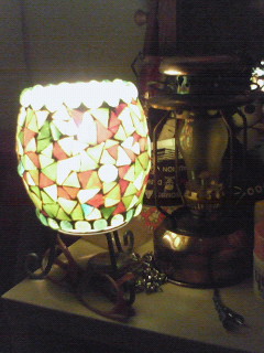 まぁとりあえずは昔買った電気式ランプシェイドで我慢します。